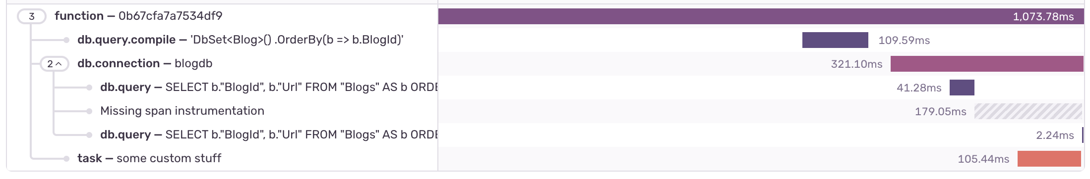 set as parent it gets appended at the bottom. But because it happened while the connection was open it would get interpreted as a missing instrumentation.